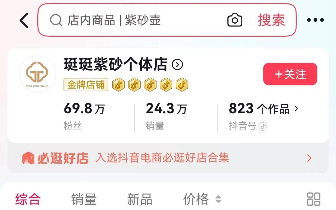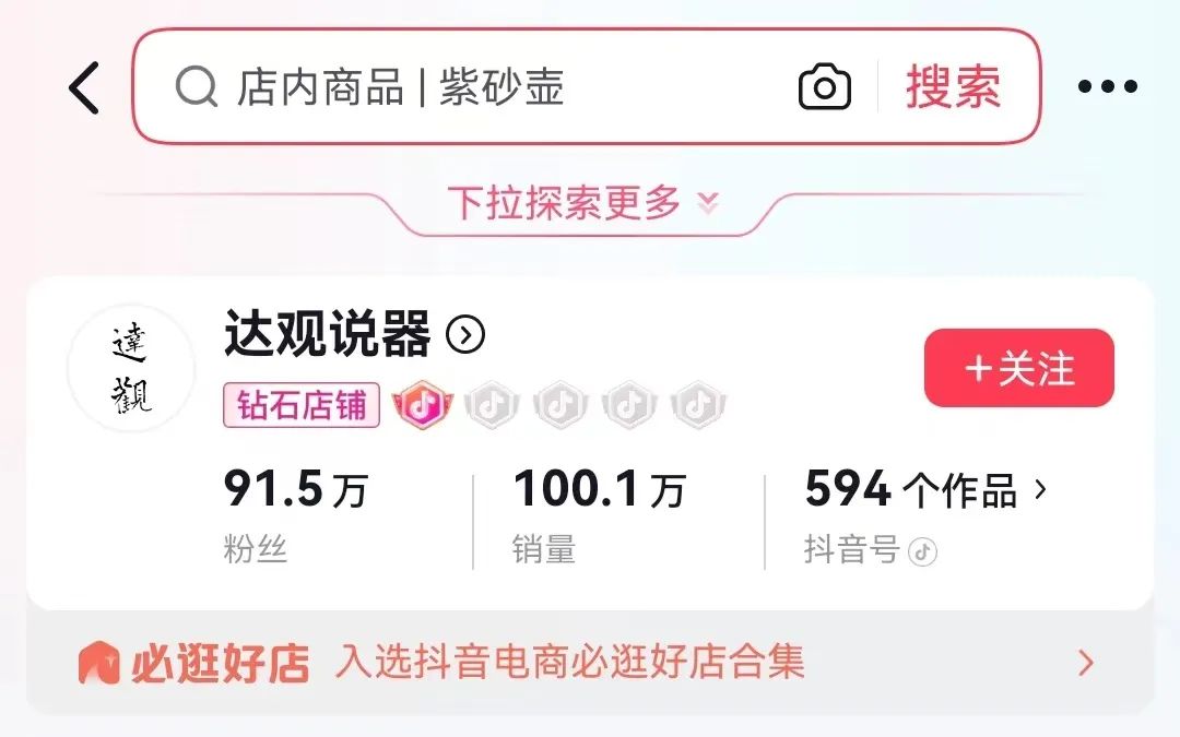 交易额飙升背后,商家正在疯狂涌入。被抖音电商扶持前,入驻抖音的紫砂壶商家不过百位;一年后,入驻商家超过4400家。截至今年7月底,入驻商家已超过8000家,几乎是三年前的80多倍,还涌现出一批年销售额过亿的头部卖家,比如达观说器、珽珽紫砂。业内人士告诉亿邦动力,今年以来销售额近亿元的商家有近十家。