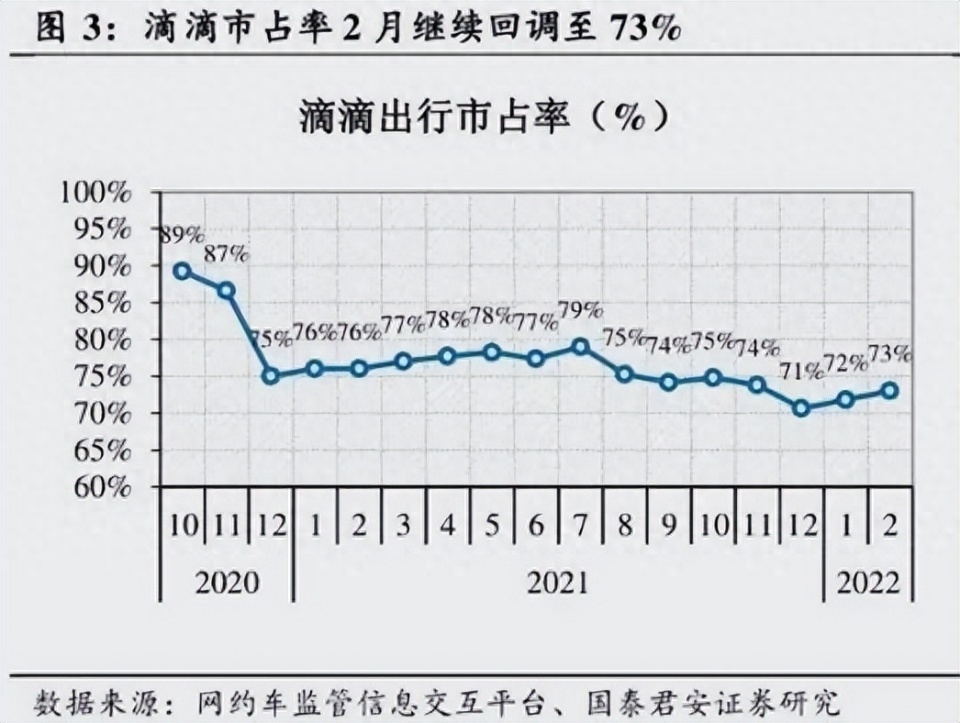 根据国泰君安研报显示,在APP被下架后的18个月间,滴滴的市场份额与最高时的90%相比,已经减少了16个百分点。截至2023年7月2日,用户端周活跃人数为5109万人,低于2021年同期的6123万人。
