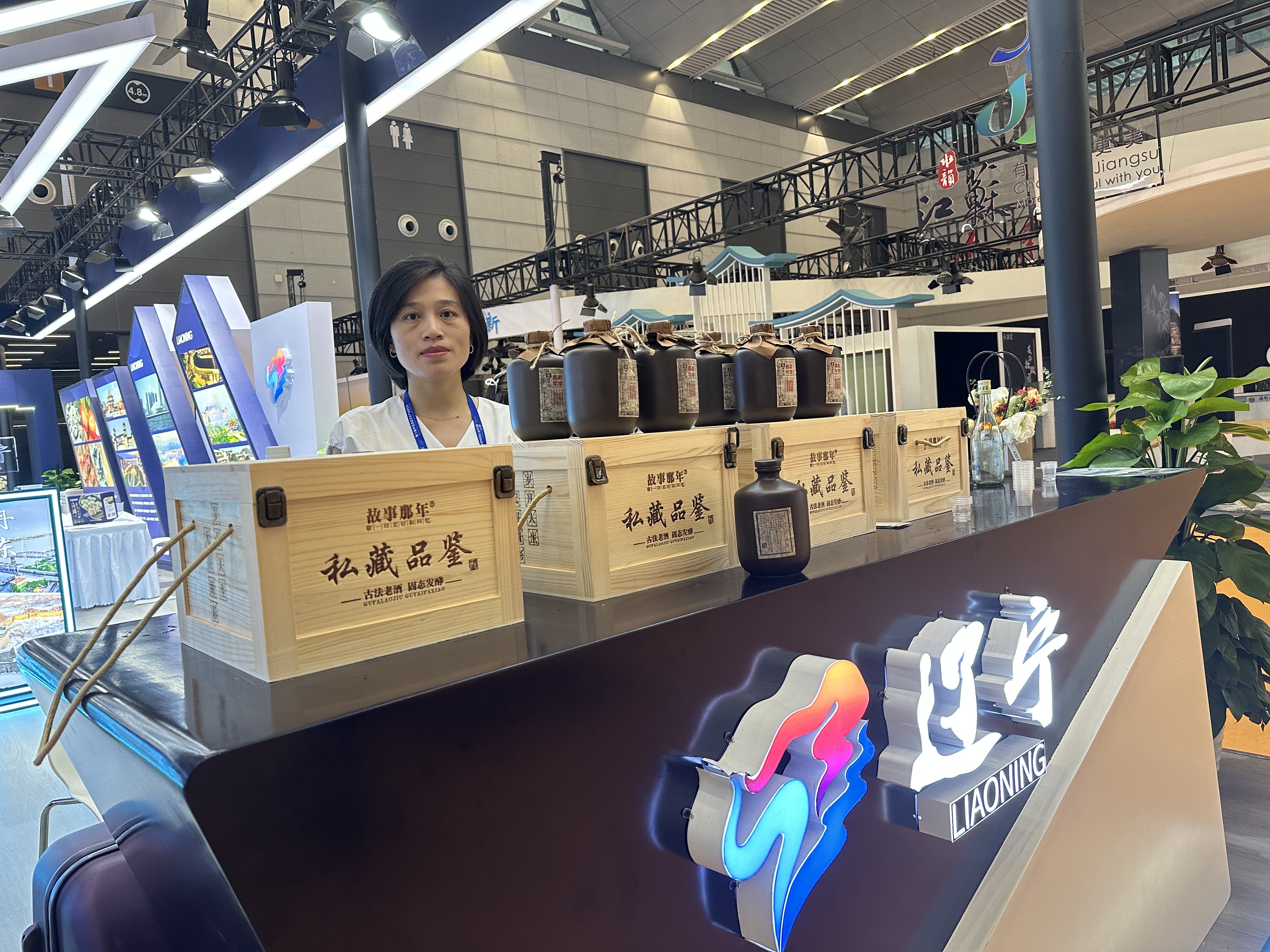 来自辽宁的一位参展商带来的产品是文化酒,但明显感到“高端”产品“很不好卖”。其实,这款“高端酒”的价格不过一箱四瓶640元,每瓶仅一百多元。“这款与往年参会相比销售下降大约一半,但另外有几十块的光瓶就卖得很不错。”这位参展商称。![]()