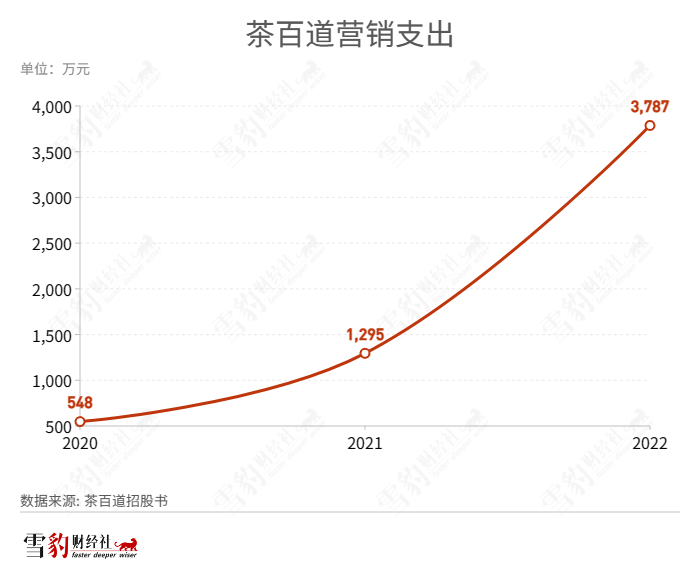 茶百道与蜜雪冰城均在2020年和2021年开启了一段扩店的“狂飙”之旅。在加盟模式之下,茶百道和蜜雪冰城都要通过向加盟店销售食材和包装材料来实现盈利。因此,加盟商越多,品牌获利越高。