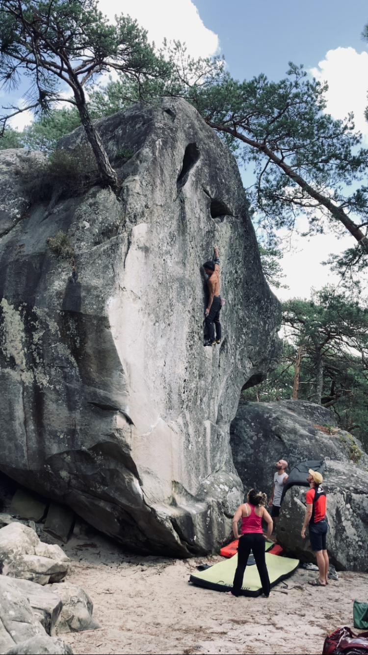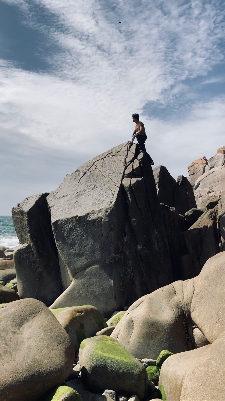 绍鹏在诺曼底的海边成功登顶,他表示“这边的石头又高又爽”。(图/本人提供)