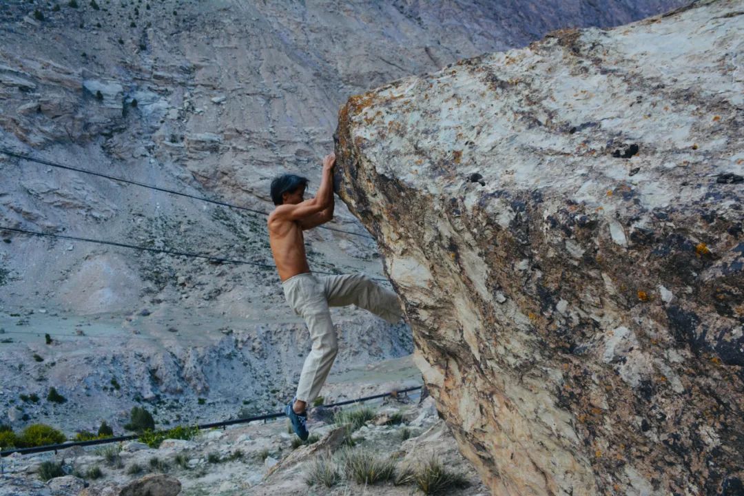 这是一种欲望的转移。狂热的野外抱石者背着抱石垫跋山涉水,从山川跨到河流,从春夏迈入秋冬,他们内心的空虚与无聊被野外抱石带来的治愈填满,他们抱住的不仅是石头,还有充满可能性的自我与不设限的生活。