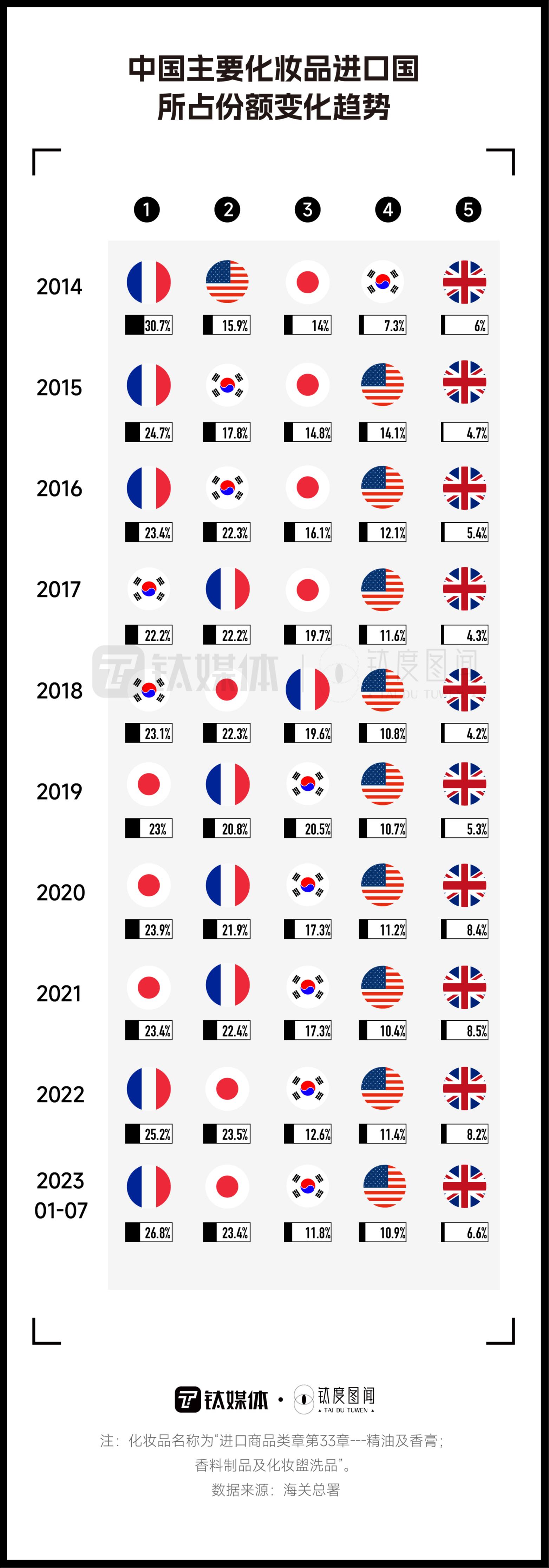 日妆进口金额下滑明显,法国成中国化妆品进口第一国