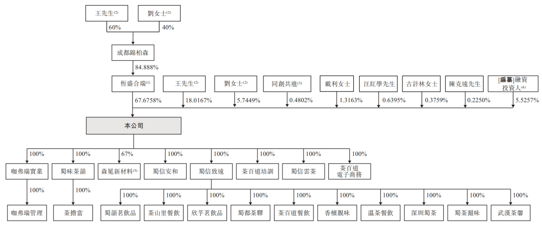 为完善公司业务架构,王霄锟紧接着安排蜀信致远以100万元收购茶百道餐饮的全部股权;蜀信致远以5万元收购武汉茶馨的全部股权;同时新成立森冕新材料、蜀信安和、茶百道培训、蜀信云茶、蜀茶沪味,共同承担加盟商管理、供应链管理、员工培训、包装生产等业务。