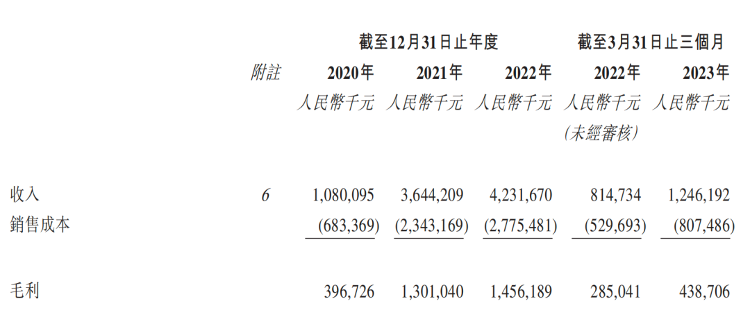 2020年-2022年,茶百道实现营收10.80亿元、36.44亿元、42.32亿元,年复合增长率97.9%;同期净利润分别为2.38亿元、7.79亿元、9.65亿元,复合增长率101.3%。