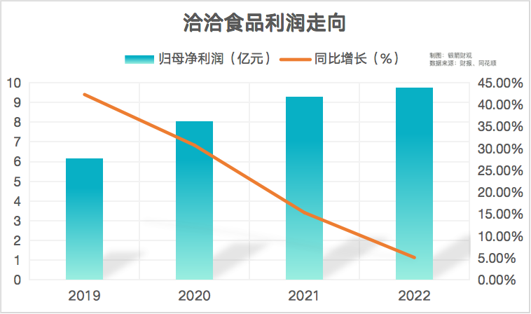 对比近些年洽洽食品的利润表现,不难发现自2020年开始,洽洽食品利润增长就趋于低迷,2022年利润增速更是降至5.10%。如果2023年下半年无法扭转业绩走势,全年利润甚至可能出现负增长。