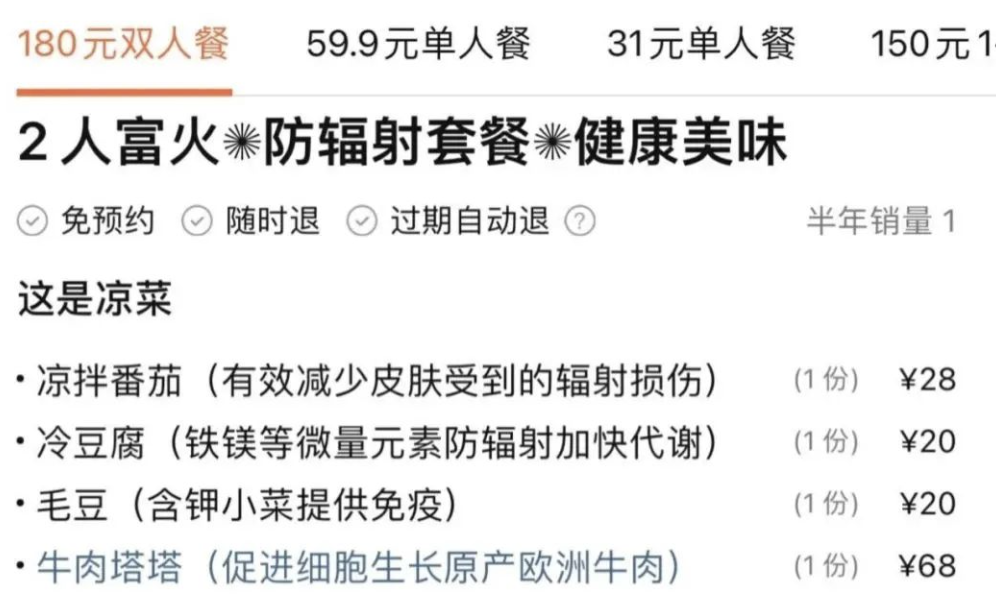 直到看到某日料店推出的“防辐射”套餐,原来我们在他们眼里就不是消费者,是傻子啊......