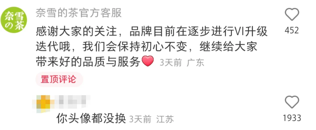 关于改名,奈雪既没有发布正式的声明公告,也没有广为宣传,只是在一位博主下留言浅浅回复了一下: