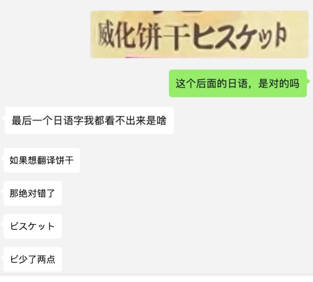 而这款超市常见饼干,没有犯句意上的错误,只是写了饼干的日语而已。