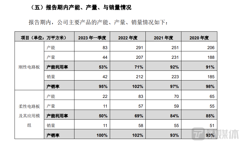 另外,2020年-2023年一季度,中京电子柔性电路板及其应用模组业务的产能利用率为85%、84%、69%、50%,呈逐年下降趋势。![]()