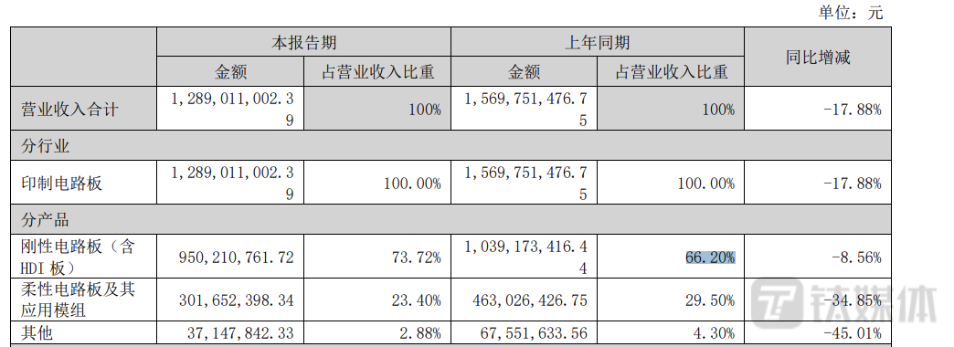 此外,从营收规模来说,钛媒体APP注意到,公司的柔性电路板及其应用模组业务占营收比重相对较小。今年上半年,该业务实现营收3.02亿元,占营收比重为29.5%。另外,该产品的营收出现下降,同比下滑了34.85%。