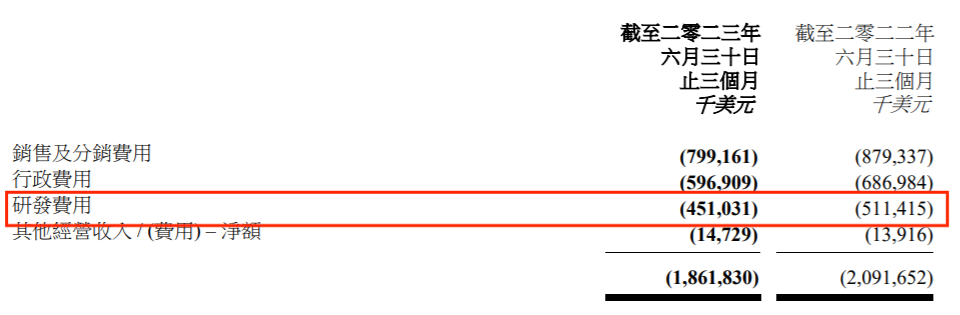 为了省钱,本就被质疑研发投入不足的联想,本财季的研发费用甚至都从去年同期的5.11亿美元下降到了4.51亿美元。