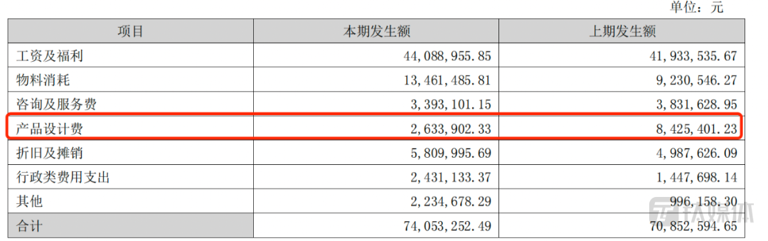 值得一提的是,今年上半年公司的研发费用中,用于产品设计的费用仅有263.39万元,较2022年上半年的842.52万元直接减少68.74%。