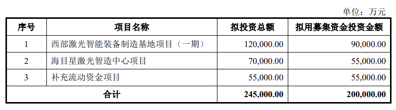 募集说明书申报稿显示,海目星本次发行募集资金总额不超过20亿元,其中9亿元用于西部激光智能装备制造基地项目(一期)(下称项目一)、5.5亿元用于海目星激光智能中心项目(下称项目二)、5.5亿元补流。![]()