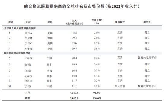 按全球第三方物流支出计,全球四大综合物流服务提供商的市场份额由2013年的4.3%增至2022年的6.6%。