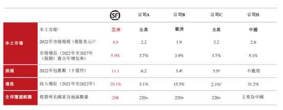 根据顺丰的招股书,截至2023年3月31日,顺丰在中国经营超过600座仓库,总面积超过730万平方米,海外仓库超过1400座,总面积超过300万平方米。这个数据看起来多,但放在全球市场来看,明显不足。