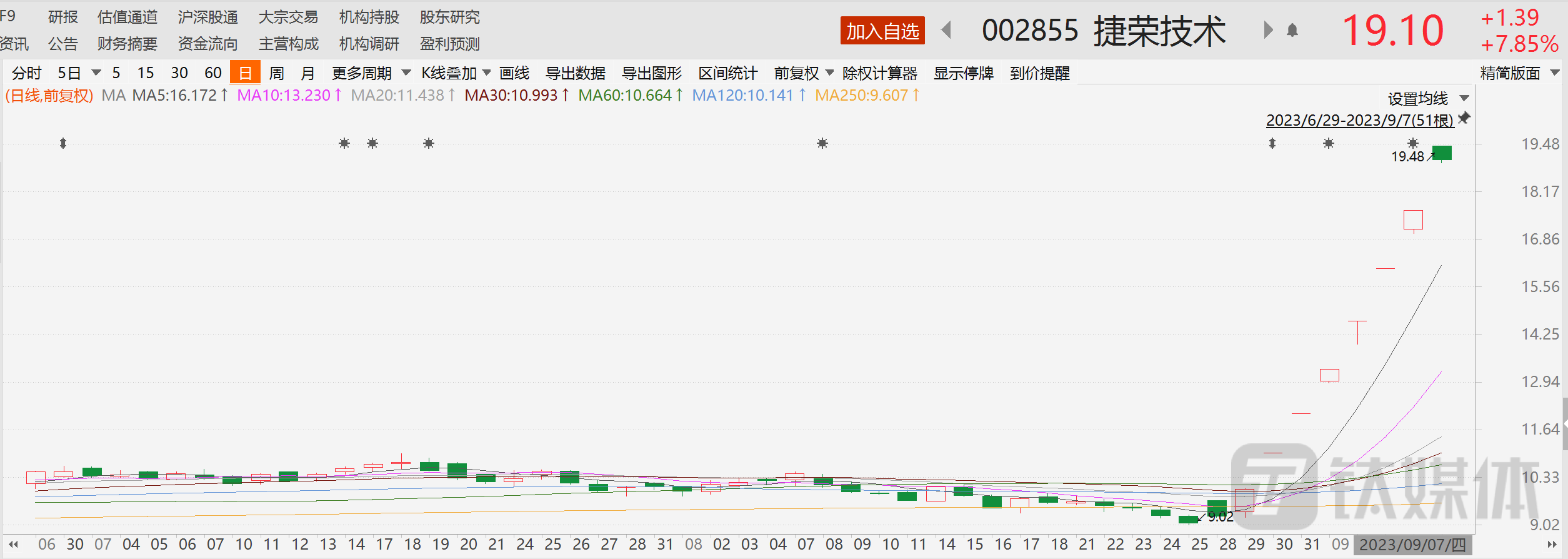 不过,公司这份“降温”公告,并没能挡住二级市场对其投资的热情。今日股票以涨停开盘,可惜尾盘没能封住涨停板,止步六连板,截至9月7日收盘,股价收报19.1元,上涨7.85%,总市值达47.01亿元。