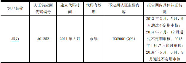 据招股说明书显示,公司早在2011年便建立了华为供应商认证代码,代码有效期为永续。