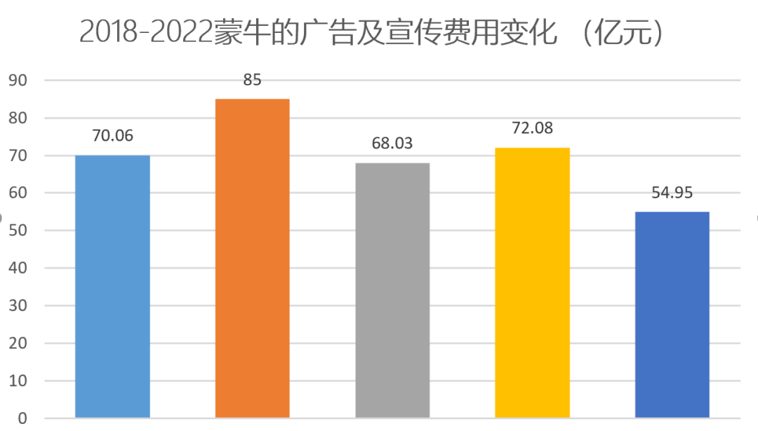然而,在2023年上半年,这一趋势开始回升,蒙牛的销售费用达到139.06亿元,拉出近五年的新峰值,同比增长9.4%。且据公司方面表示,其中用于产品和品牌宣传的费用增加至约51.2亿元,几乎与2022年全年持平。