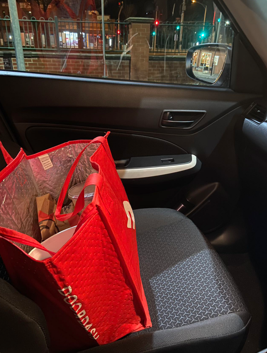据我了解,在澳洲,本地人点外卖的习惯几乎是在疫情之后慢慢培养起来的,形成习惯之后就很依赖外卖了,也比较愿意为这种人力劳动付费。有一次我们送过一个外卖,顾客就在同一条街的另一个餐馆吃饭,几步路远;还有一次,我接到一个超市代买的单子,顾客只买了一个苹果、一袋猫粮,货品才8澳元,但配送费就要15澳元。