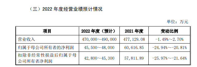 金田新材表示,2022年度预计营业收入较上年度基本持平,但净利润较上年度有所下降,主要原因系受全球经济形势及疫情影响,终端消费市场需求增速放缓,BOPP薄膜毛利率较上年度有所下降所致。
