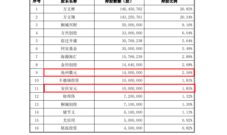 招股书显示,2019年12月27日,池州徽元与方文彬签订《股份转让协议》,方文彬将其所持有的金田新材1400万股股份转让给池州徽元,股份转让价款为3570万元,股份转让价格为2.55元/股。2020年6月30日,安庆安元与方文翔签订《股份转让协议》,方文翔将其所持有的金田新材1000万股转让给安庆安元,股份转让价款为 3000万元,转让价格为3元/股。