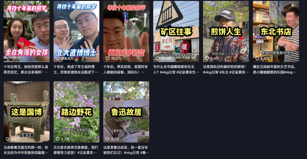 这期获赞73万的视频拉开了该系列的序幕,在接下来的视频中,主人公有成为明星的李雪琴,有直博北大的博主,有重返职场的全职妈妈,也有进入体制内安稳度日的女孩。