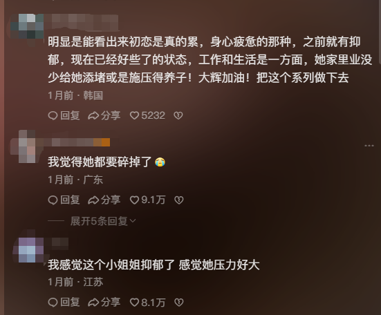 寥寥数语间,不难看出她过得并不快乐。评论区中,不少网友产生了共情,纷纷表示:“能看出来她是真的累,身心疲惫的那种”“我原来上班的时候也是这样的状态”。
