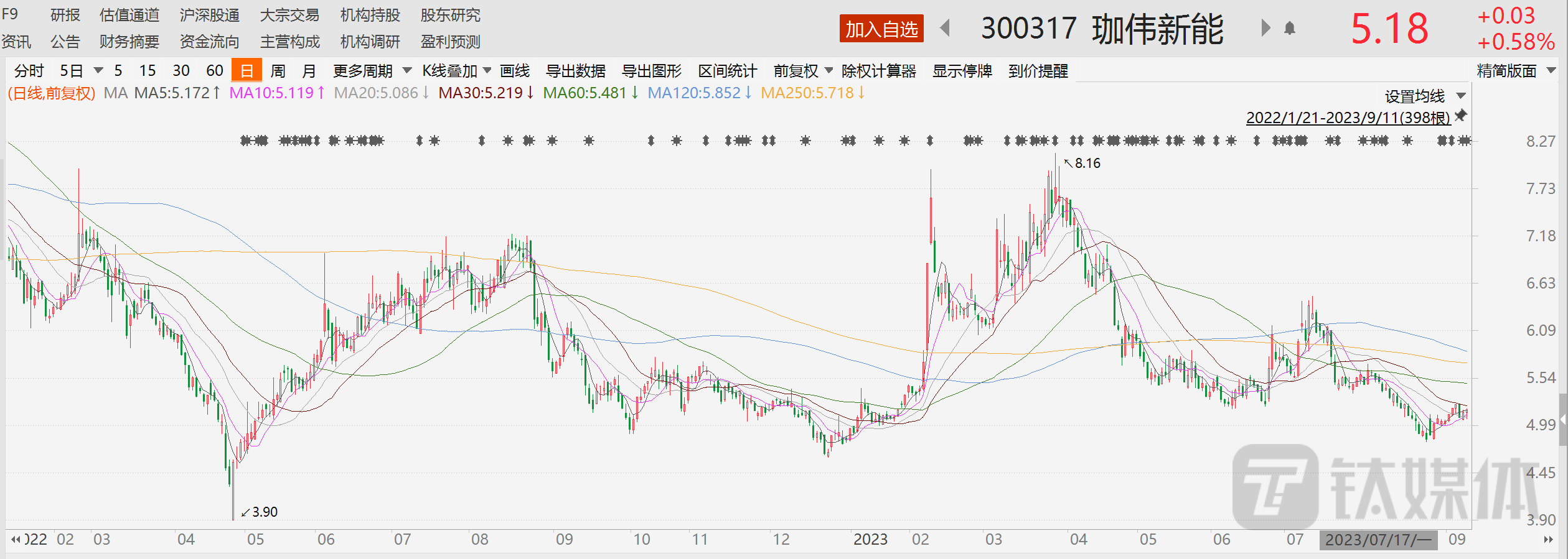 二级市场方面,截至9月11日收盘,公司股价收报5.18元,上涨0.58%,总市值42.79亿元。