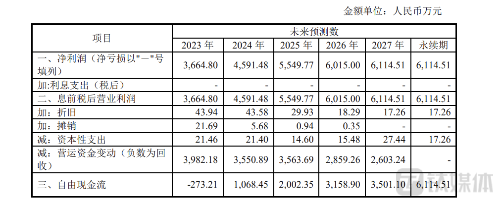 博思致新承诺在2023年- 2025年经审计扣非净利润分别为3919万元、4846万元、5755万元,但公司评估预测的净利润分别为3664.8万元、4591.48万元、5549.77万元,明显低于承诺业绩。