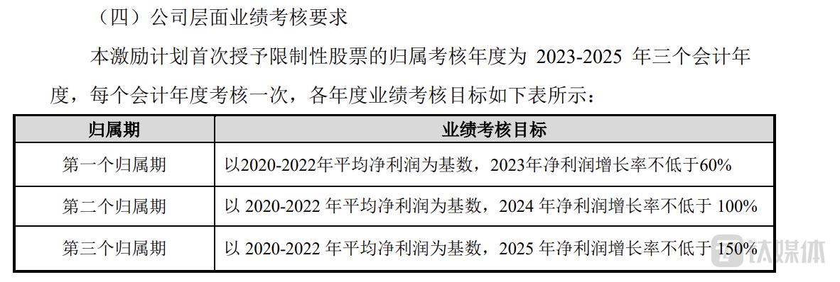 据悉,公司2021年激励计划考核期限为2021年-2023年,以2018年-2020年平均扣非净利润为基数,要求2021年至2023年的扣非净利润增长率分别不低于59.14%、81.88%、108.04%。以此计算,扣非净利润为1.64亿元、1.87亿元、2.14亿元,前两个业绩考核均已达标。