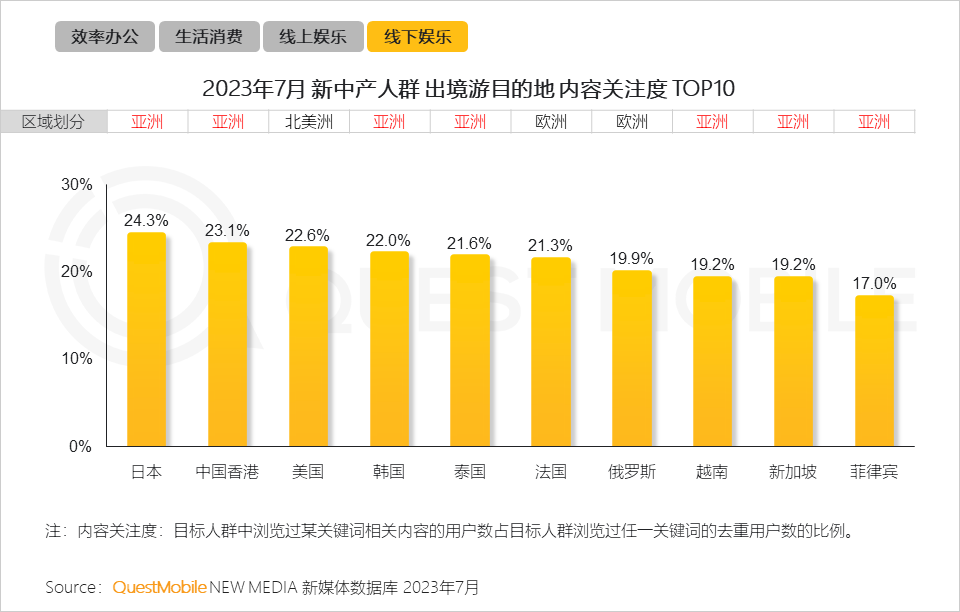 12、交通便利、距离相对较近的亚洲成为最受新中产人群喜爱的出境游目的地