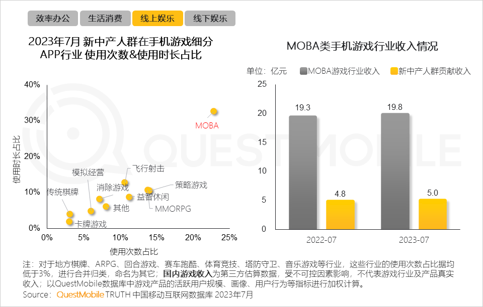 10、MOBA类游戏具有竞技、合作、对抗等特点,占据新中产游戏玩家的心智;收入方面,以全网20%活跃渗透率的新中产人群为MOBA类游戏行业贡献了约四分之一的收入