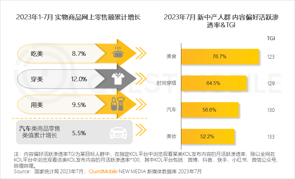 2、新中产人群对于吃、穿、用、行均有较强的关注偏好,进而为消费的复苏和增长增添助力