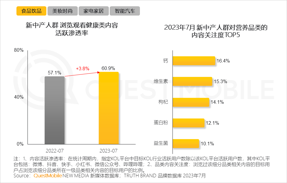 5、此外,随着新中产人群愈加关注健康相关的内容,钙、维生素等成为新中产人群重点关注的营养品