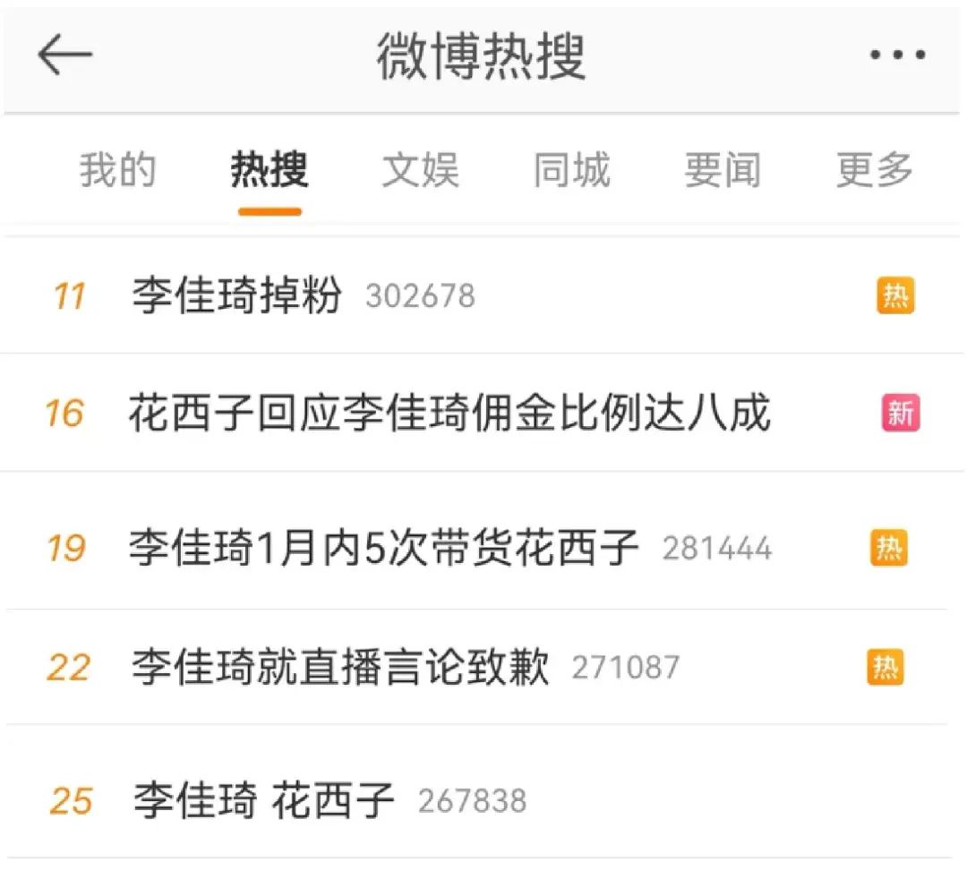 9月10日,受不当发言影响,当晚李佳琦直播间总粉丝量减少5.5万,在风波之后发布道歉声明的9月11日,粉丝数继续减少16.8万,短短两天粉丝蒸发27万之多。而截至发稿前,其粉丝数已经蒸发将近百万,#李佳琦掉粉#同样冲上了微博热搜。