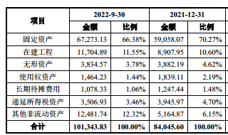 招股说明书显示,截至2021年末和2022年9月末,中兴新材的固定资产为59058.07万元、67273.13万元;在建工程为8907.95万元、11704.89万元。截至2022年9末,中兴新材固定资产和在建工程较2021年末多了1亿元。