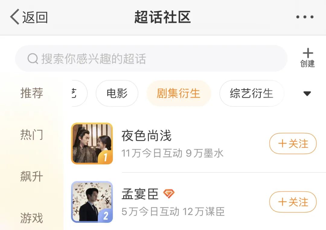 一个颇为吊诡的现象是,纵使相关争议颇多,叙事节奏和剧本也并不完善,《云之羽》的爱奇艺站内热度还是青云直上地破了9000,男二女二的CP“夜色尚浅”迅速登顶了剧集衍生超话排名,突破了“孟宴臣”长达一个月的统治。