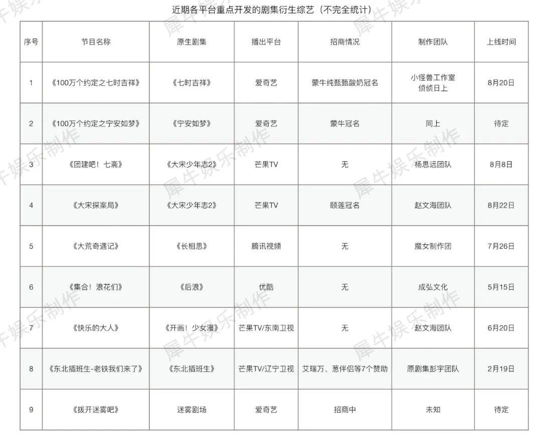 不同以往的是,这轮各大平台都很默契地把剧集衍生综艺的项目开发“前置”,当剧衍综被完全纳入到剧集制作范畴内,说明长视频平台的剧改综思路更为成熟了。