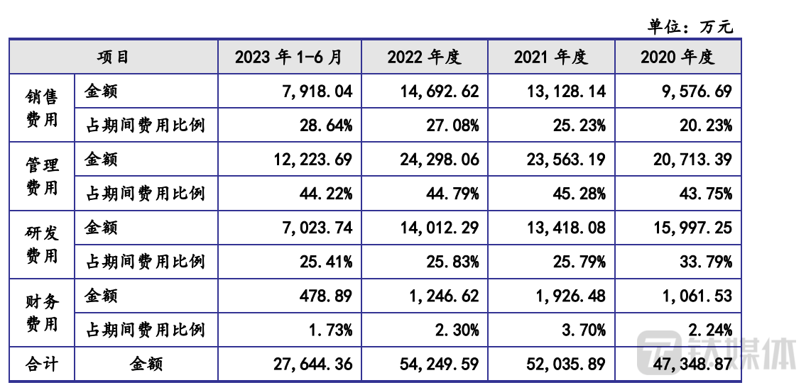 钛媒体APP注意到,在管理费用增长的同时,公司研发费用整体在波动,2020年至2022年各年度,研发投入金额分别为1.6亿元、1.34亿元、1.48亿元,研发费用率从2021年的10%下滑至2022年的7.8%。