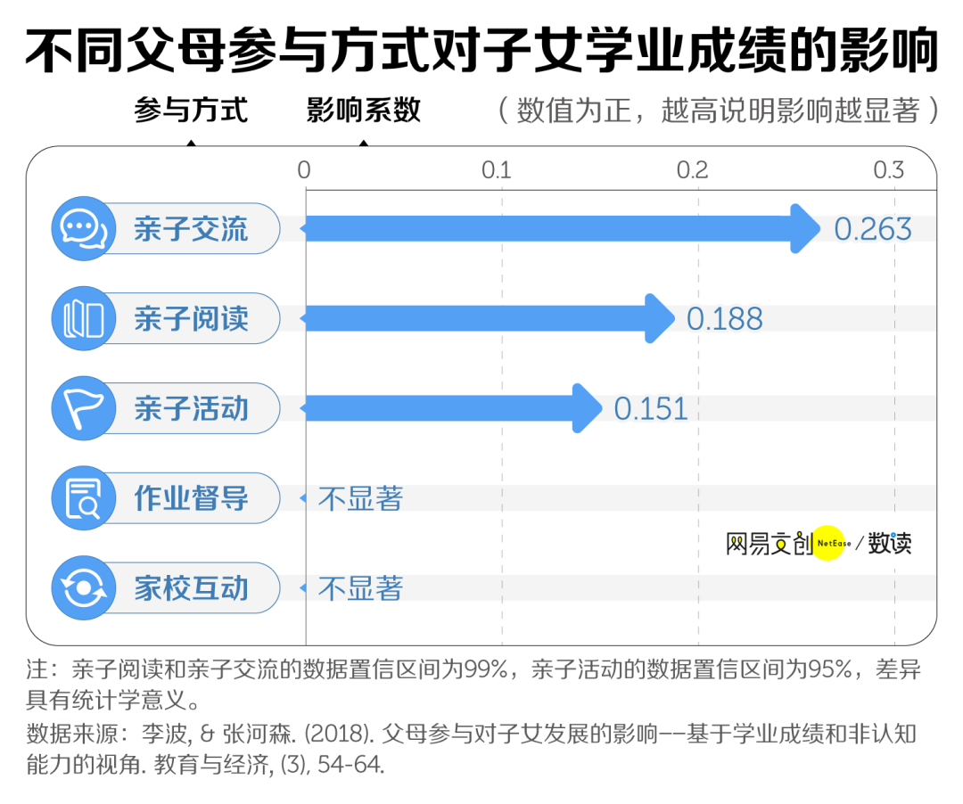真正能够显著提高学生学业成绩的,其实是亲子阅读、亲子活动、亲子交流 [8]。