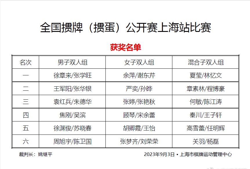 作为江苏省的省粹,掼蛋还发展到了临近的安徽、上海,就在前几天,这个项目还在上海进行了一场全国公开赛,还是分男女双人组的那种。