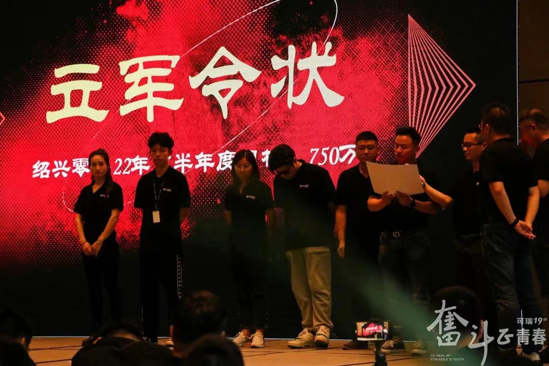 由此来看,可瑞楼宇与可瑞设备之间的关系和业务界定并不明晰。值得一提的是,关于可瑞楼宇的营收情况,钛媒体APP根据可瑞楼宇2022年年中销售会议上的图片了解到,当年可瑞楼宇绍兴零售团队对2022年下半年立下的“军令状”是750万元,杭州零售团队立下的“军令状”是540多万元。由此保守推算,可瑞楼宇杭州、宁波、绍兴三地2022年零售业务营收至少超过500万元。不过,伟星新材在公告中公布的可瑞楼宇2022年实现营业收入仅329万元,净利润为50万元。![]()