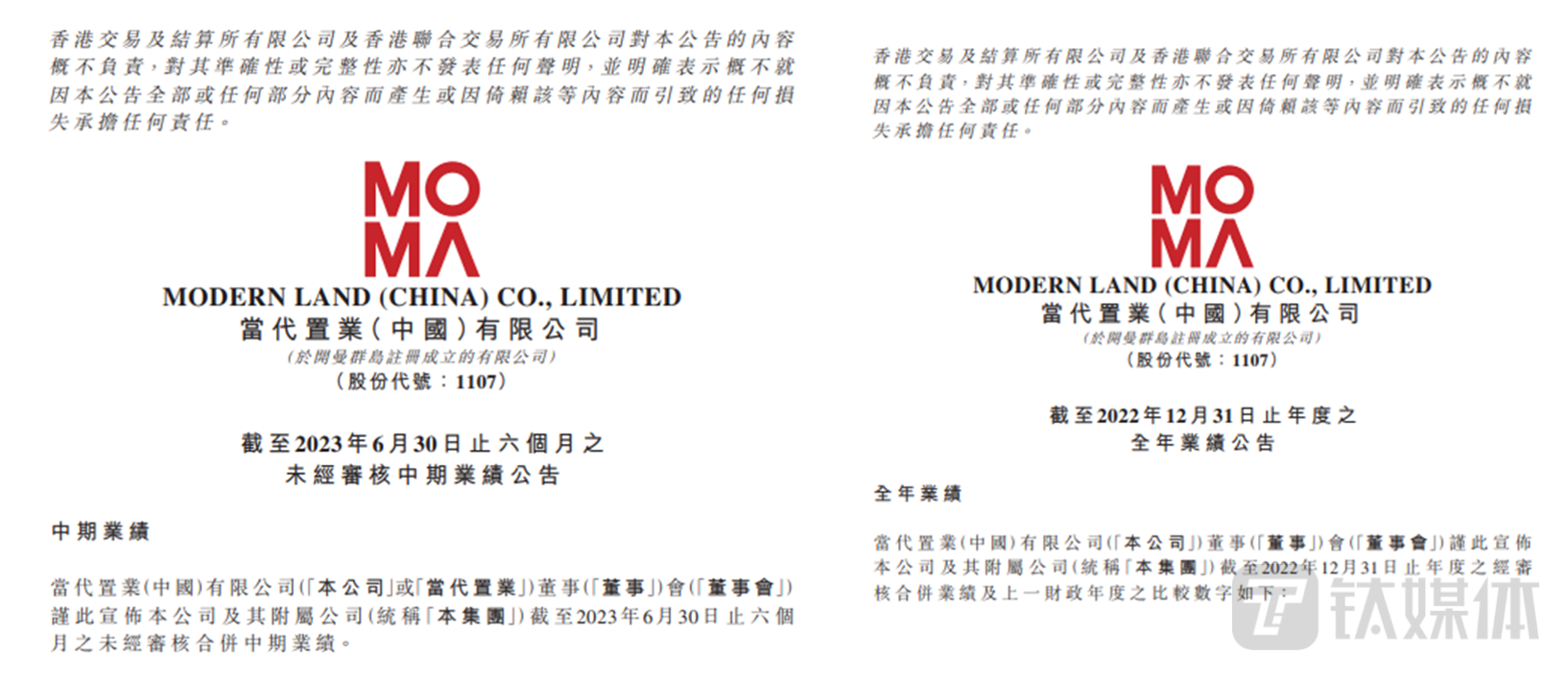 同日,当代置业按照复牌指引要求也发布了2022全年业绩公告及2023中期业绩公告。在今年4月28日发布2021年报、在6月27日发布2022年半年报,满足复牌条件。