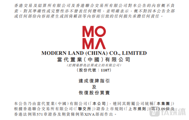 9月13日,当代置业宣布将于9月14日上午9时起恢复公司股份买卖;而此时距离当代置业2022年4月1日起停牌,已经过去17个月零13天,距离18个月除牌大限只剩17天。