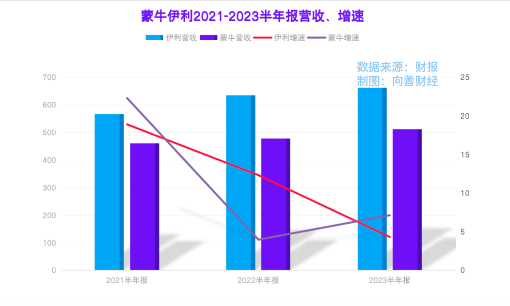 但不同的是,今年上半年,伊利的奶粉及奶制品贡献收入达到了135.21亿元,同比增长12.01%。而同期蒙牛的奶粉业务营收却只有18.94亿,直接拉开了百亿元的营收差距,同时也打开了资本市场的想象空间。