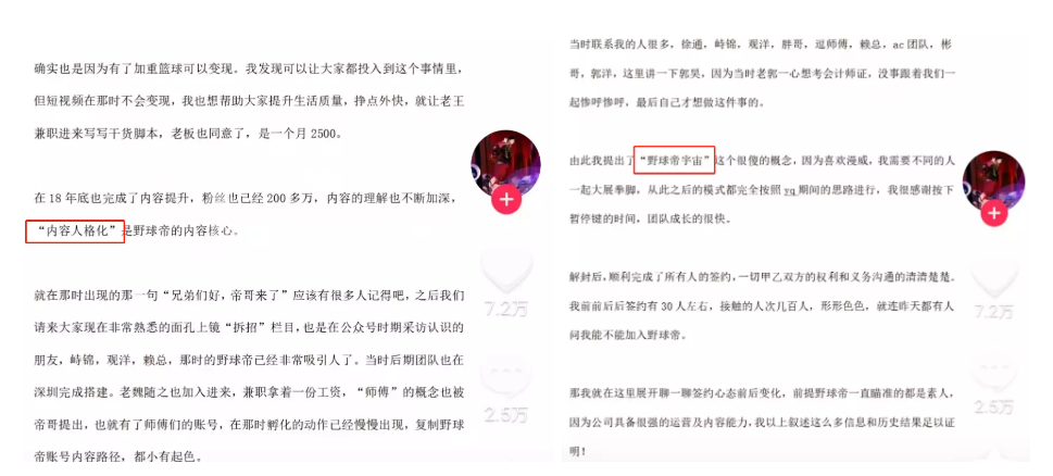 他在文中直言:“达人矩阵的成功,使野球帝的知名度更上一层楼。但是,没有野球帝的持续资金支持和团队能力,何来达人矩阵的建立和运营?”