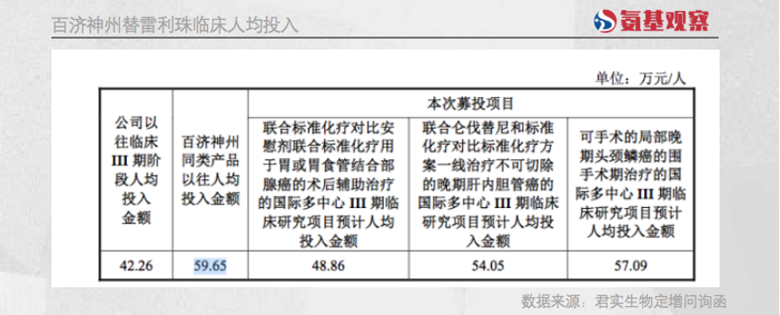 如下图所示,君实生物曾在问询函回复公告中测算,百济神州人均临床费用接近60万元。