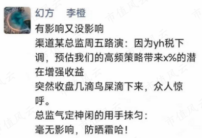 在当时交易新规出台时,还敢在朋友圈里发表“鸟屎论”的李橙和幻方量化,这一次也老实了许多,没有再传出什么惊人之语。