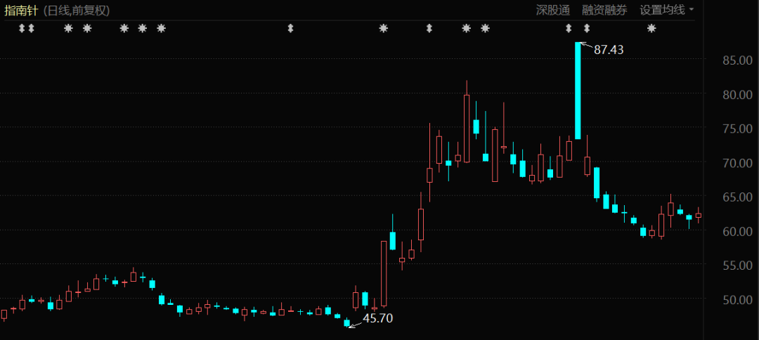 指南针股价表现(自2023年6月至今)